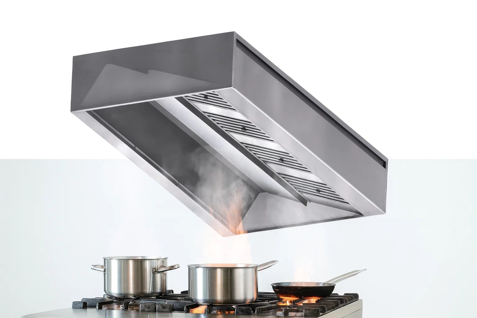 Aceasta hota inox este echipata cu tehnologie si accesorii de top, fiind destinata bucatariilor profesionale de mari dimensiuni, intrucat acopera integral insula de gatit si extrage eficient fumul, vaporii, grasimea si mirosurile rezultate in urma procesului de gatit.